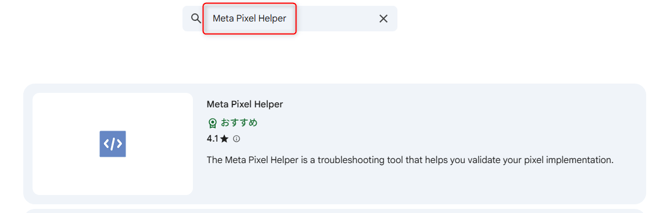 下記のページより、「Meta Pixel Helper」を検索のうえ、選択してください。