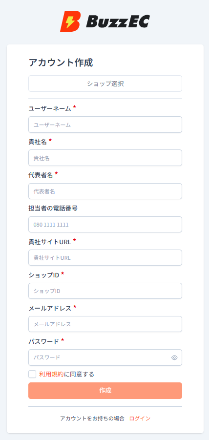 これでBuzzECのアカウントが作成されます。