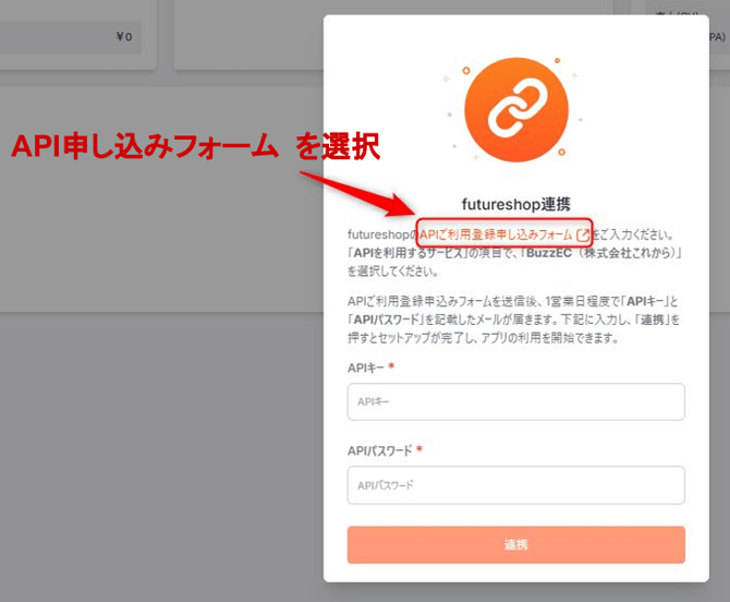 ※本内容は、貴社のfutureshopとBuzzECを連携するための、フューチャーショップ様への申請となります。この連携により、futureshopにご登録の商品データをBuzzEC側で自動で読み込むことが可能となり、簡単に広告を作成いただけるようになります。