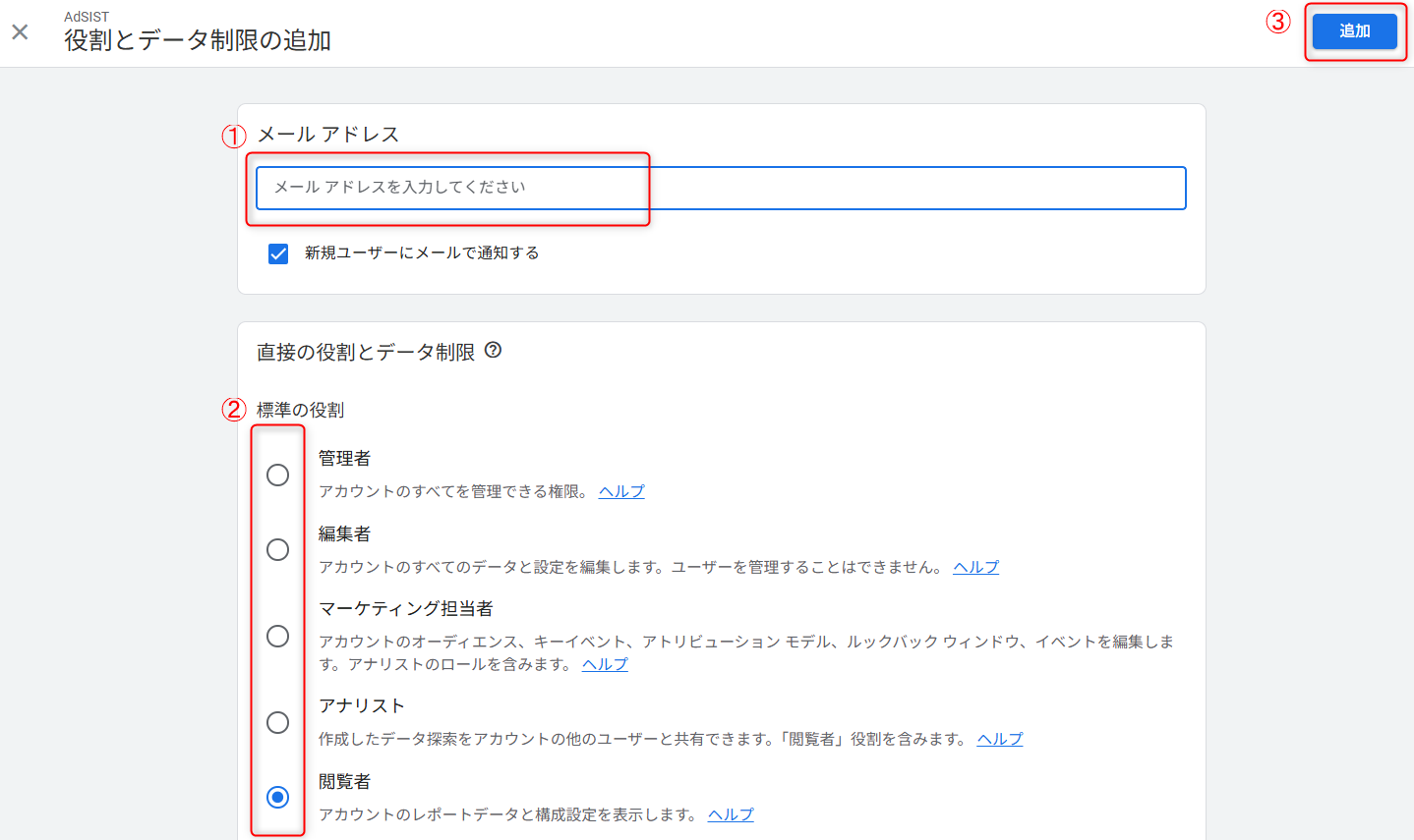 ⑤ 必要情報や選択を行い、追加ボタンを押して完了です。