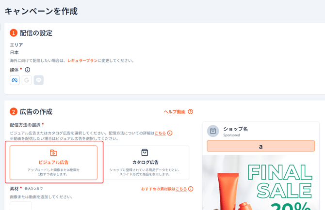‣ビジュアル広告(画像/動画)の作成方法はこちら