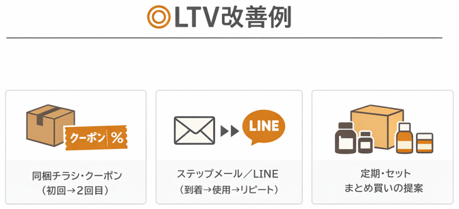 ✅リピート施策(メール/LINE/同梱/定期等)をセットで整える